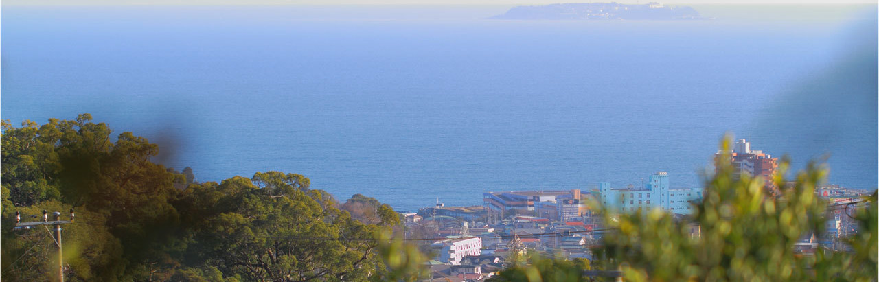 昼間は、晴れていると遠くには大島、目の前には初島を眺めながら・・・、空気が澄んだ日には伊豆七島まで望めるロケーション。