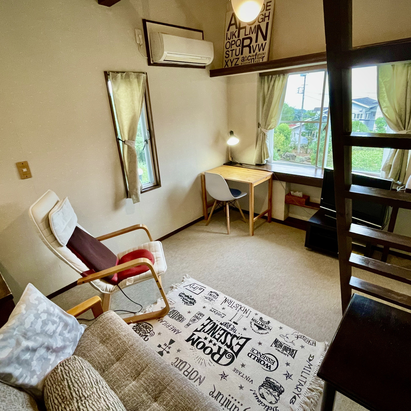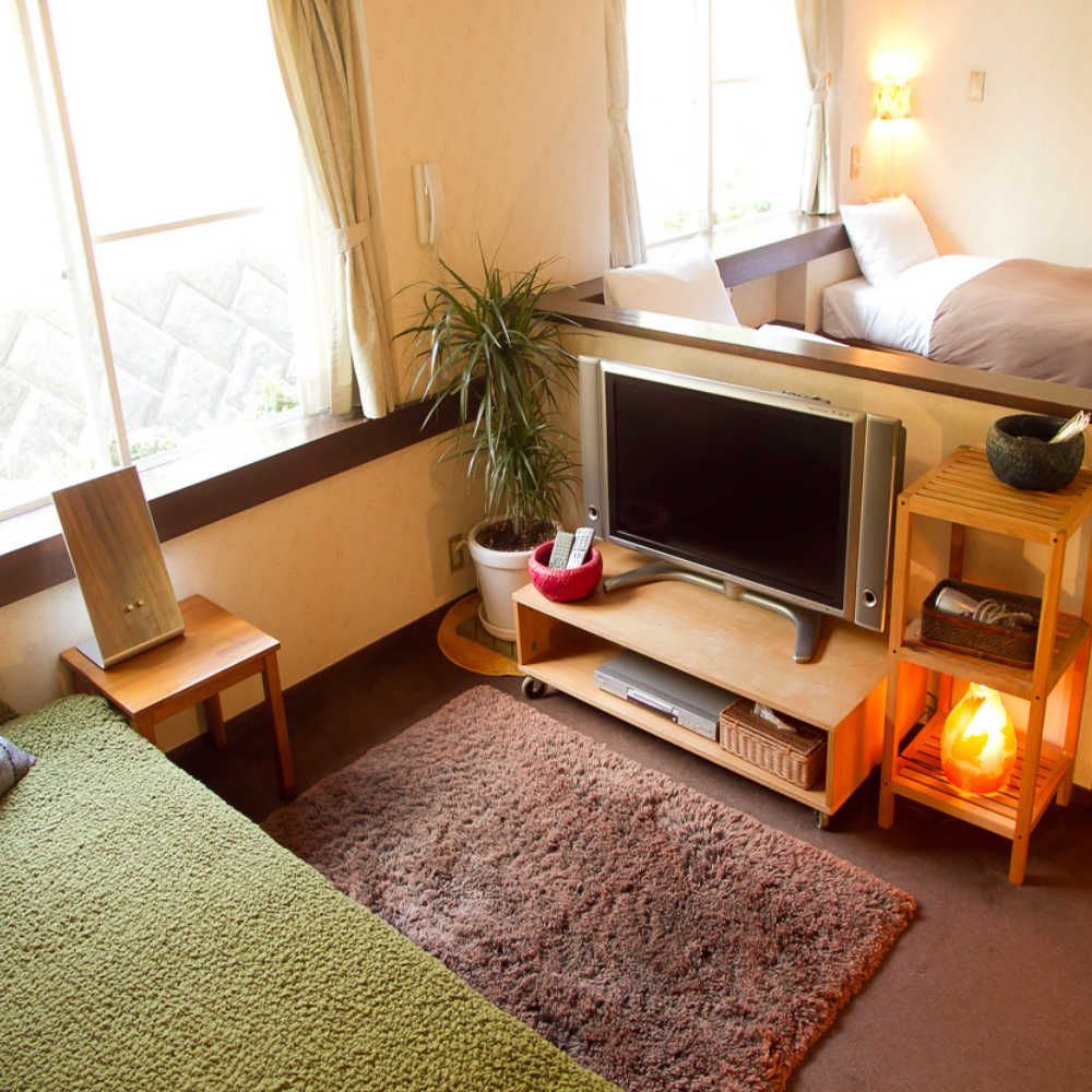 ボンファムを象徴する隠れ家部屋っぽい雰囲気で、若いカップルに人気のお部屋。海側の2Fの角部屋で、湯河原の花火もお部屋から見えます。シャワー・洗面・トイレ付